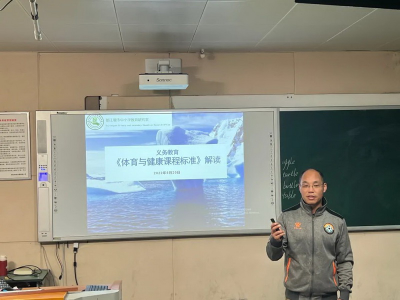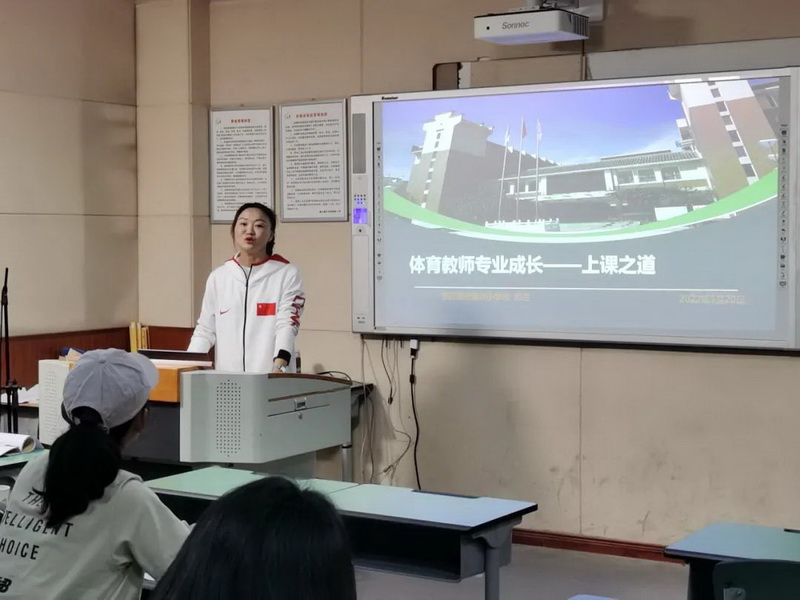 Activity three: Deng Lan from our school did a special sharing. It constructed the macroscopic and the microscopic curriculum view and the classroom view for the PE teachers. And teachers further clarified how to effectively implement the 40-minute classroom teaching strategy under different contents and different types of classes under the background of the trial implementation of the 2022 new curriculum standard.