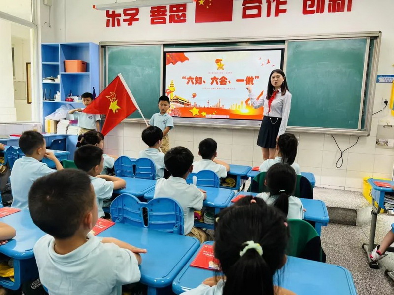 New team members, new counselors. Six class teachers in grade one wore red scarves, took the letter of appointment and squadron flag, and took the oath of office.
