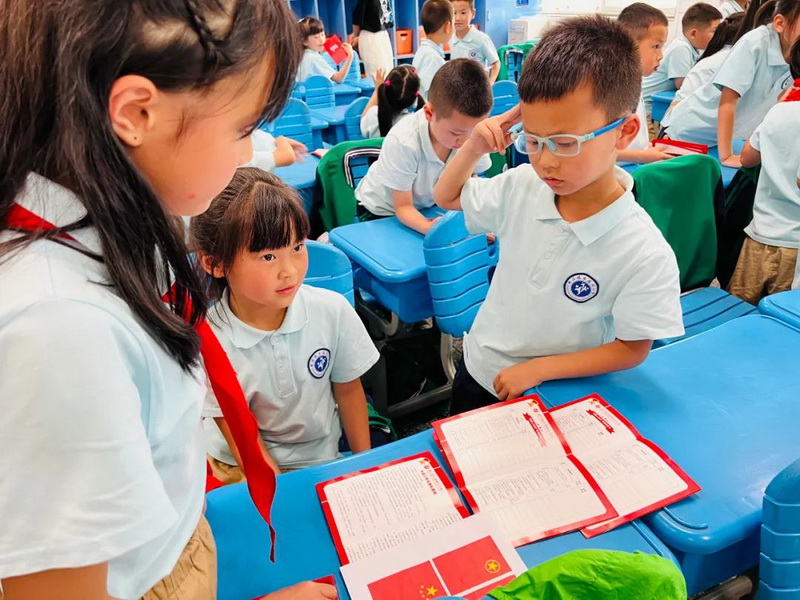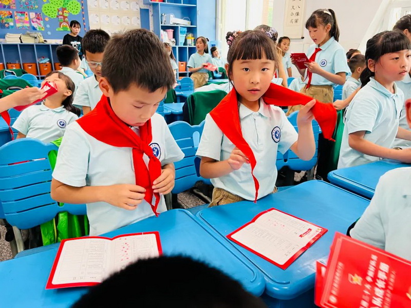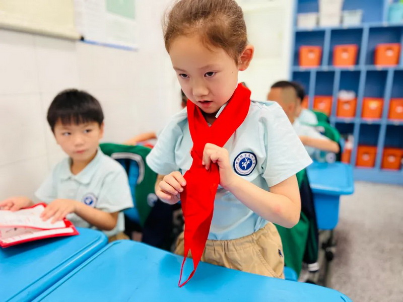 Before joining the team, the head teacher of each class in grade one organized all the students to understand the basic knowledge of the Chinese young pioneers. The team Department of the school has carried out the red scarf competition in front of the team. In the continuous red education of joining the team, the children have gained identity and belonging to the organization, and deepened their feelings for the young pioneers.