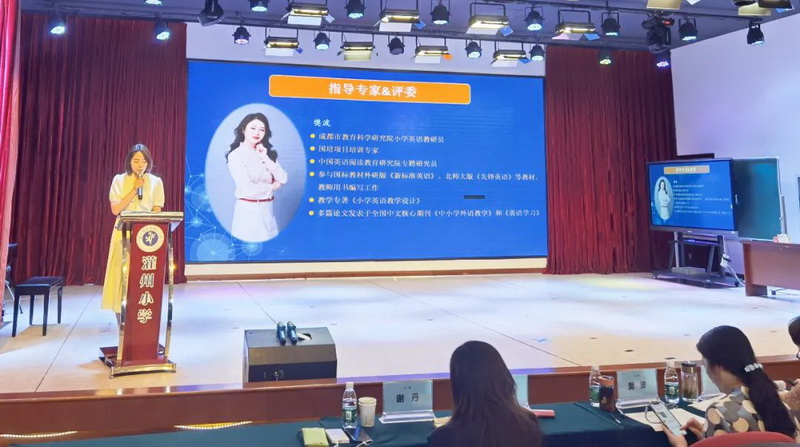 出席本次展评活动的嘉宾有:成都市教育科学研究院樊波老师,锦江区教育科学院小学英语助理教研员谢丹老师,郫都区教研培训中心小学英语教研员叶波老师,都江堰市中小学教研究室小学英语教研员杨名老师,都江堰市灌州小学校马长俊校长。鉴于疫情人数控制,本次活动进行了网络现场直播。