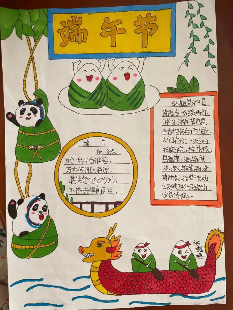 Each class held a theme class meeting to introduce the customs of the Dragon Boat Festival to the students, so that the students could have a deep understanding of the knowledge of the Dragon Boat Festival and appreciate the unique charm of traditional culture.After listening to the story of the great patriotic poet Quyuan, the children understood that the Dragon Boat Festival is not only the Zongzi Festival and the Dragon Boat Festival, but also the National Day and Patriotic Festival.
