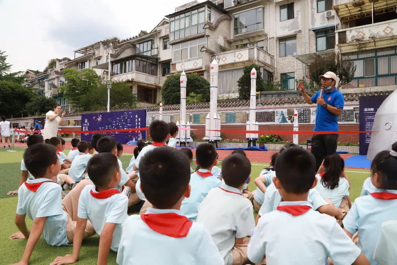 来自中国航天科技集团第七研究院、四川航天燎原科技有限公司工程师的领导与专家通过视频、图片以及生动形象的讲解为孩子们带来了关于火箭、太空舱等相关知识,以及航天员太空生活等,开拓了孩子们视野,培养了孩子们科学意识。