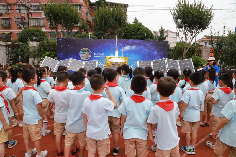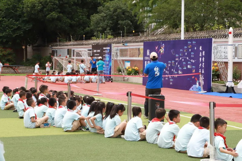 On June 13, our school held a grand opening ceremony. After the chief counselor's camp mobilization, all the students watched the aerospace science popularization film. The whole ceremony stimulated the children's thirst for aerospace knowledge and the desire to explore the sky.