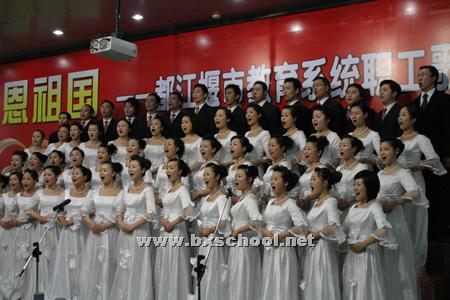 4月22日下午,都江堰市中小学教师歌咏比赛决赛在我校学术厅隆重举行,我市教师满怀激情,深情演唱了《这就是我的祖国》、《祖国颂》、《祝福祖国》、《我和我的祖国》等爱国歌曲来表达他们对党、对祖国的真挚热爱,也传唱出教师们对生活的热爱和赞美,这次活动演唱形式新颖独特,充分展现了教师们的多才多艺和集体协作精神。