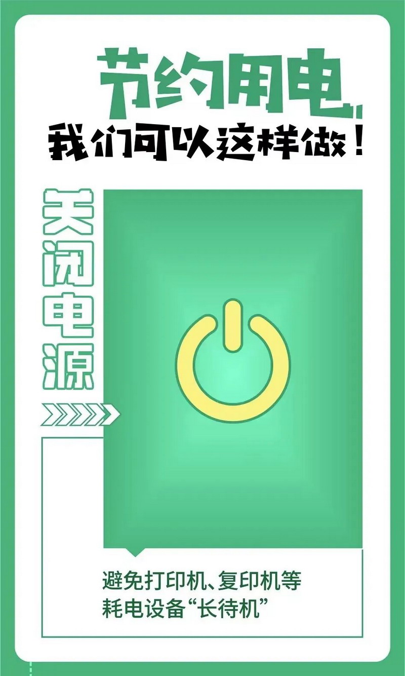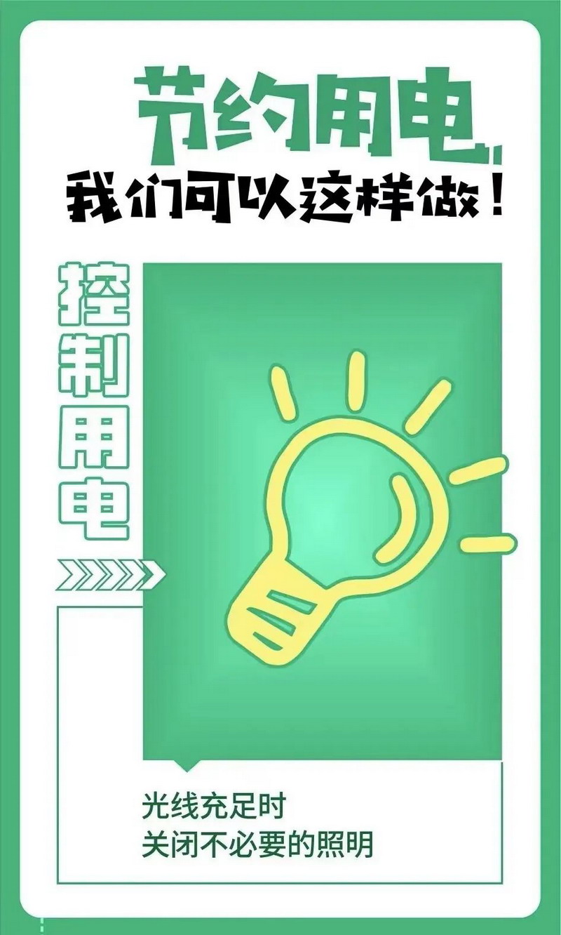 Saving electricity is everyone's responsibility. Let's act together to ensure that everyone uses electricity sparingly, every household consciously saves electricity, and the whole society uses electricity in an orderly manner, so as to jointly cope with the current tense situation of power supply.