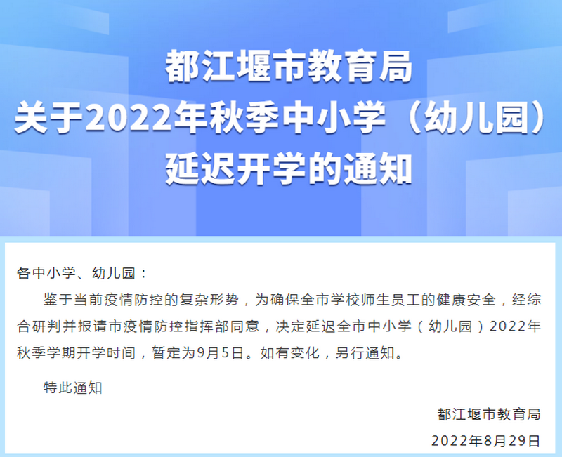 我校原定于8月31日进行的学生报到工作,因当前疫情防控的严峻形势取消。开学时间暂定为9月5日,具体报到时间会在学校微信公众号或班级家校沟通群提前通知,敬请大家及时关注。