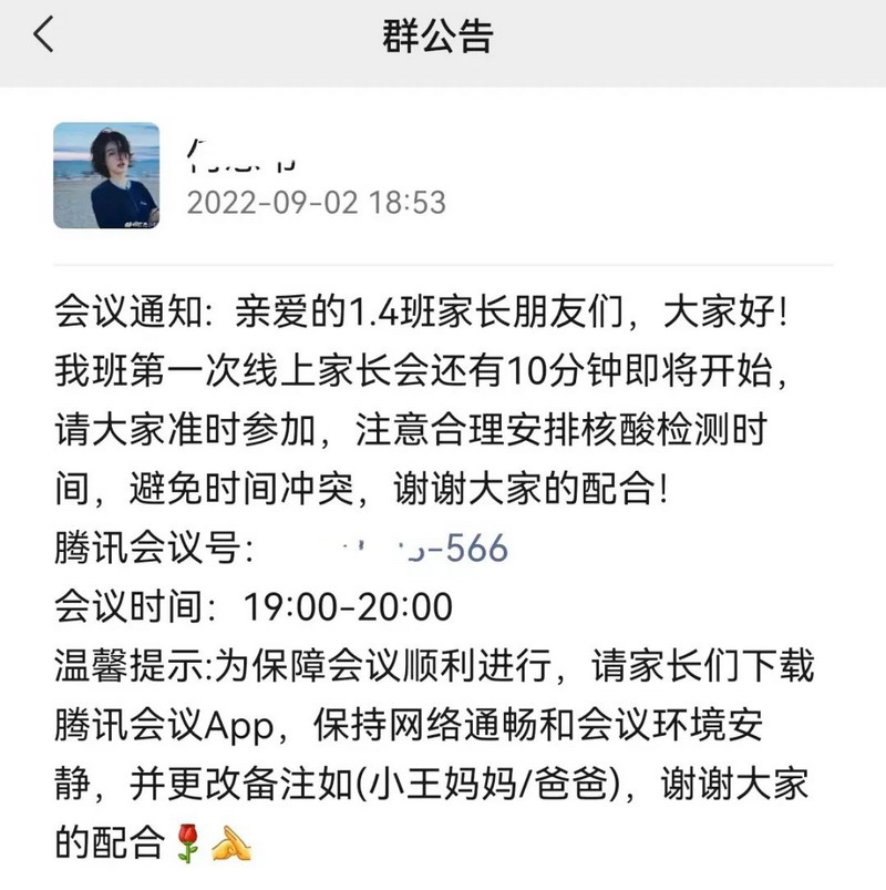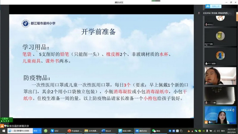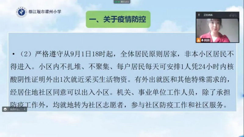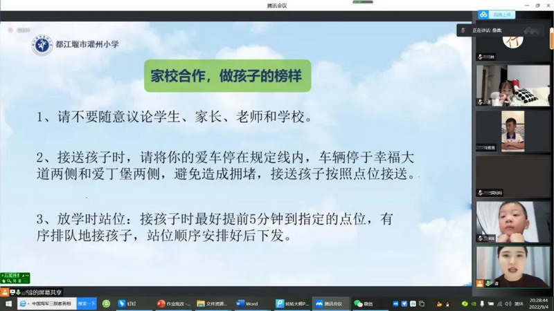 At 7:00 on the evening of September 1, due to the epidemic, all classes in grade one of our school held their first online parent meeting through Tencent meeting. At the meeting, the head teacher of each class communicated with parents from four aspects: epidemic prevention and control, safety education, home requirements and hypothetical online learning requirements.