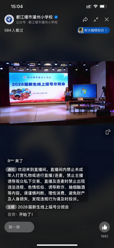 公开、公平、公正,是我国教育发展的方向。灌州小学校坚定不移地拥护国家教育方针,坚持发展均衡教育。由于居家政策原因,2022年9月4日15:00,我校通过线上直播举行2028届新生摇号分班活动。