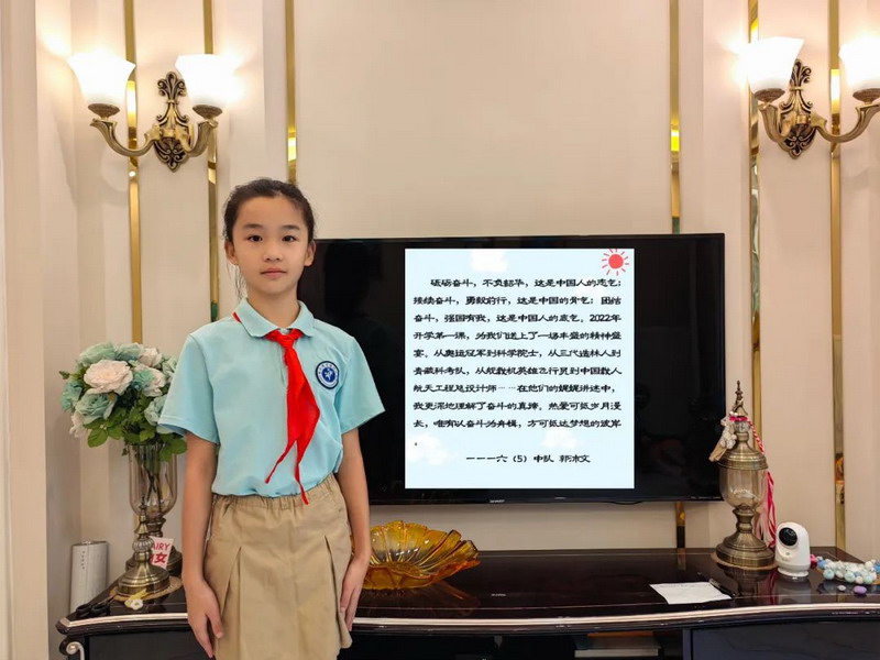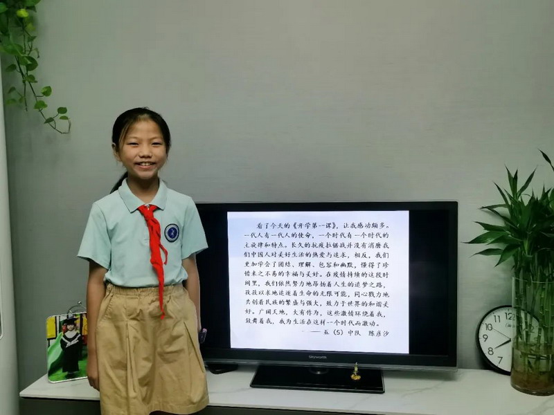 These vivid, profound and exciting stories inspire young people to strive hard on their new journey in the new era. "The first lesson" further inspired the children to love the party patriotic enthusiasm. In the special period of epidemic prevention and control, let us bravely take on the burden of The Times, overcome difficulties, do our best to study at home, epidemic prevention and control work, and show the responsibility and responsibility of children who are not afraid of difficulties.
