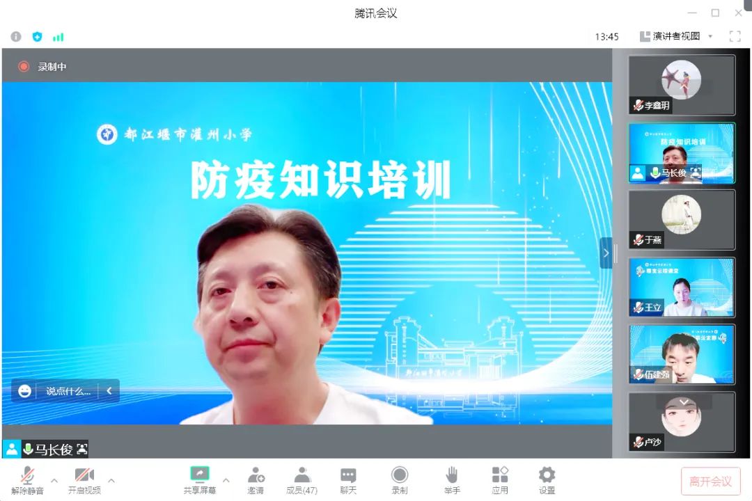 本次防疫知识培训由党支部马长俊书记向全体教职工介绍了当前疫情防控形势并传达了上级部门会议精神,要求大家进一步认识疫情防控工作的重要性,配合做好各项检测工作,增强工作责任感、使命感,做好疫情防控期间日常防护的各项准备工作,再由支部委员会带领全体教职工按照具体要求开展线上学习。