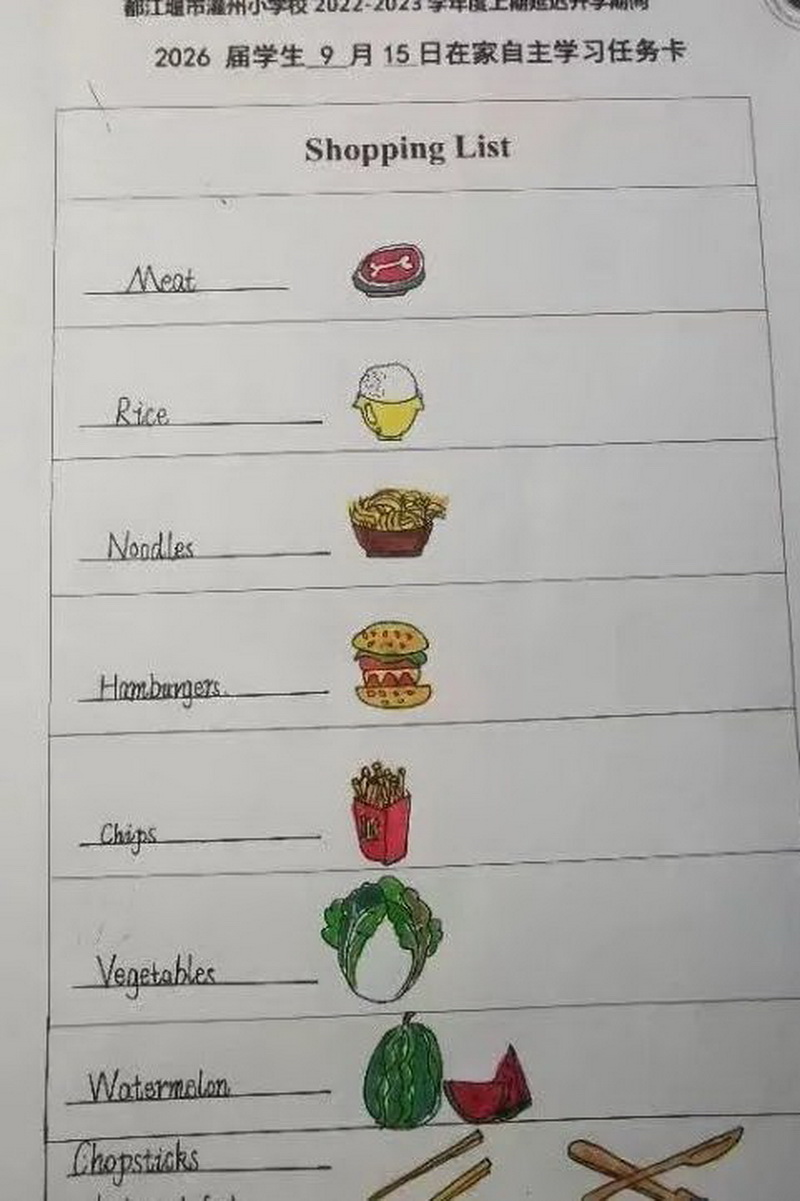三年级的同学们为堰宝的野餐计划制定了Shopping List,让我们一起来瞧一瞧吧!