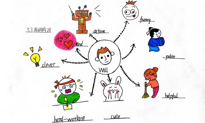 Mind map is an effective learning method to enhance learning interest, improve understanding ability, promote active thinking, and systematize knowledge. The works of Grade 5 students fully reflect the collation and processing of knowledge, and systematize knowledge. It not only presents a colorful personality and style, but also enables them to improve their learning efficiency and stimulate their innovative thinking ability while acquiring multiple learning methods. Finally, it excavates students' potential and creativity in English learning and enriches English cultural life.