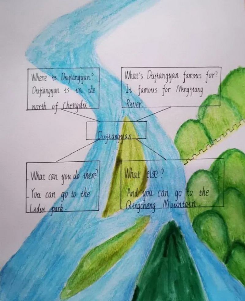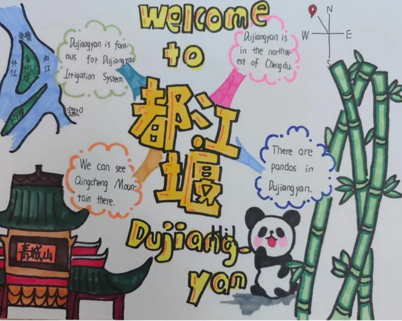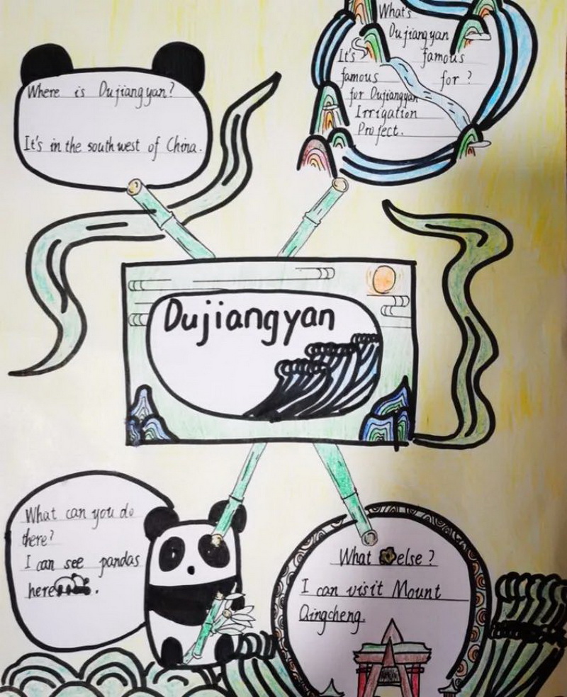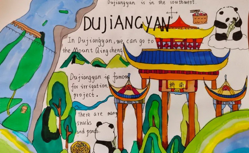 The students of Grade 6 took their hometown Dujiangyan as the theme and introduced the knowledge about Dujiangyan in the form of mind map. Students used their knowledge to solve practical problems, reflected the identity of their hometown, strengthened their cultural confidence, and enhanced the feelings of home and country. Please follow us and feel the Dujiangyan described by the children!