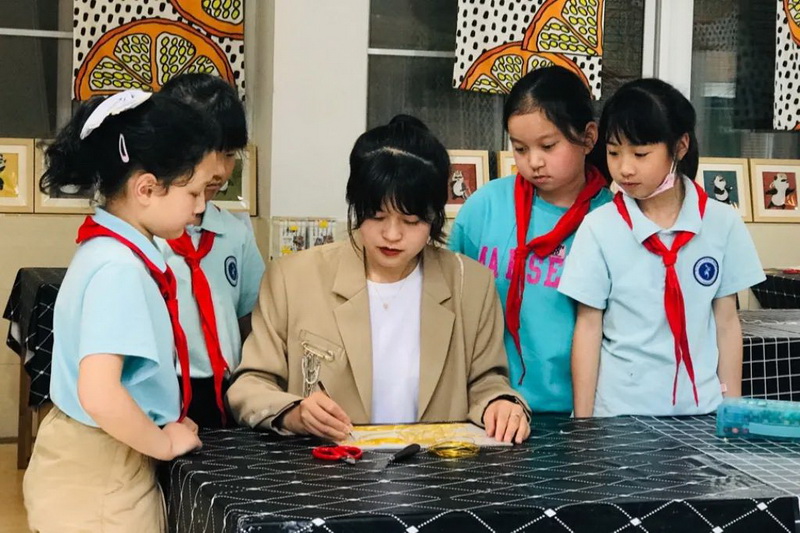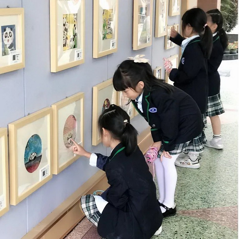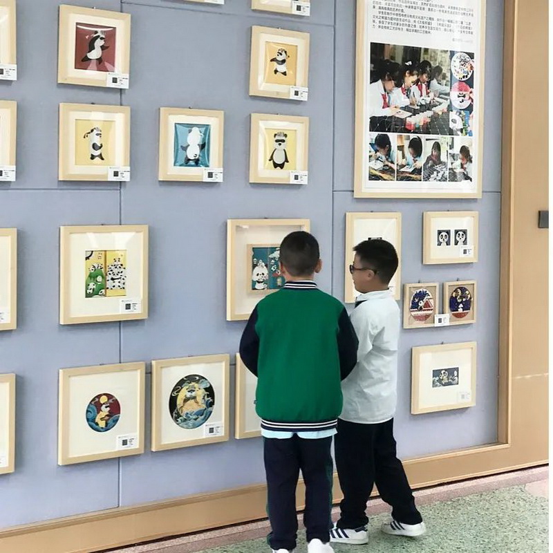 The theme of this exhibition is pandas. Under the guidance of Fu Chao, the students spent half a year to make vivid works.