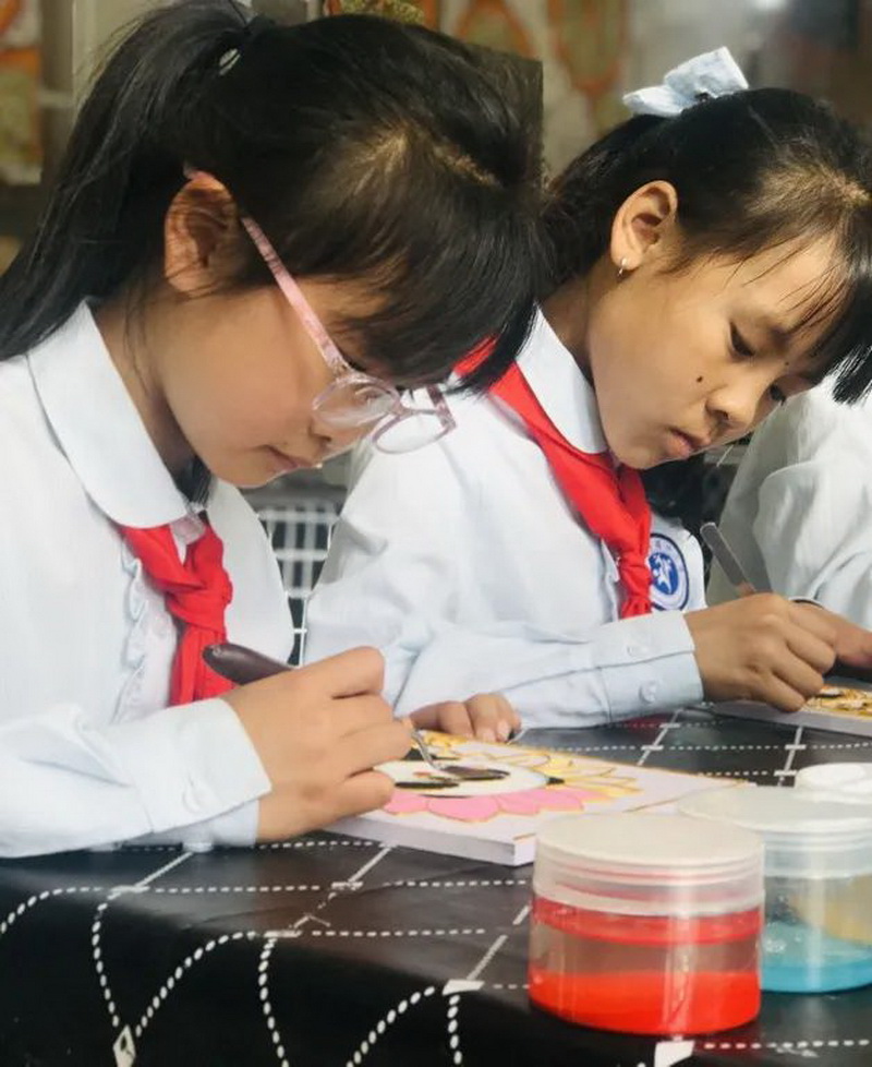 In September, in order to further enrich the campus cultural life and create a positive and elegant campus cultural atmosphere, the school held the first cloisonne silk painting exhibition.