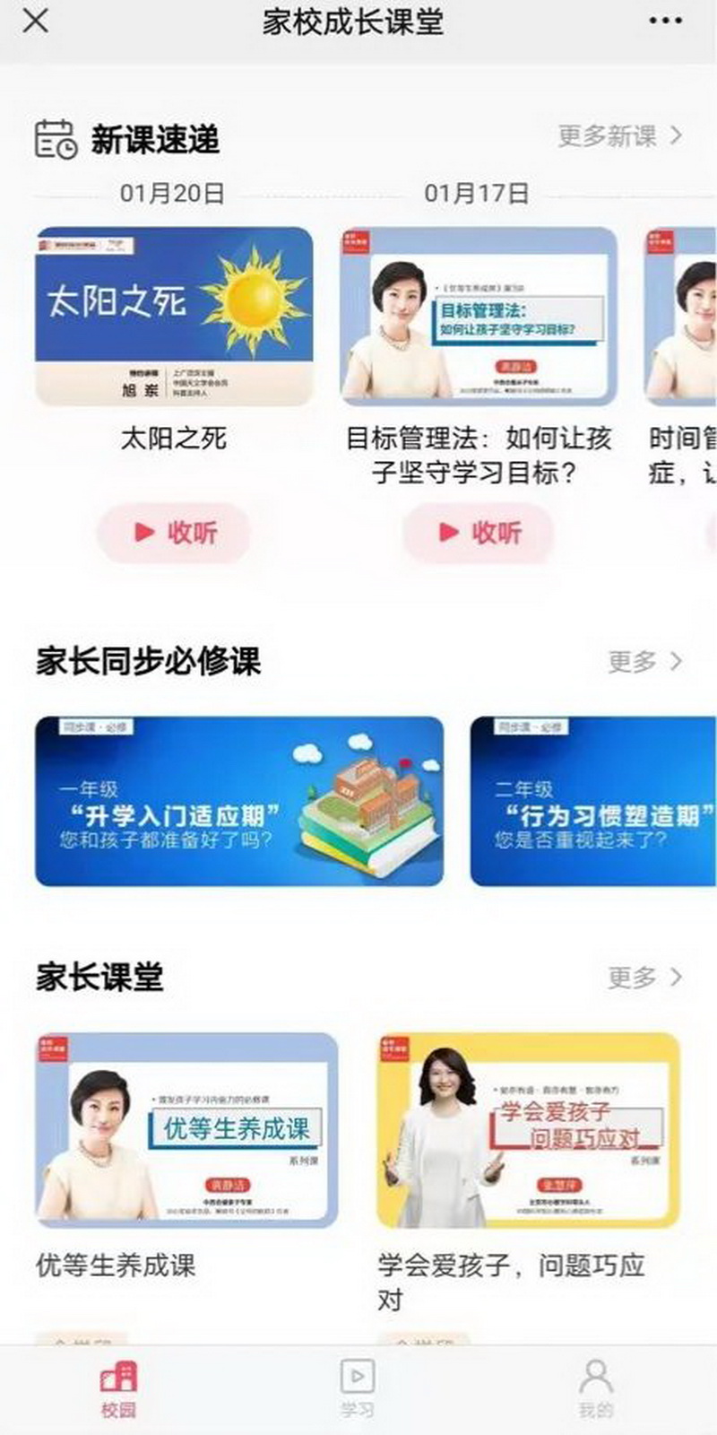 The school has specially purchased family education courses for parents, so that every parent can participate in learning to meet the needs of school development and resonate with school education.