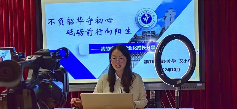On the morning of October 21, 2022, the "head teacher professional growth experience exchange" sponsored by Chengdu Education Research Institute was held in Chengdu Caotang Primary School. Our teacher Ai Xiaohong made an exchange on behalf of Dujiangyan.