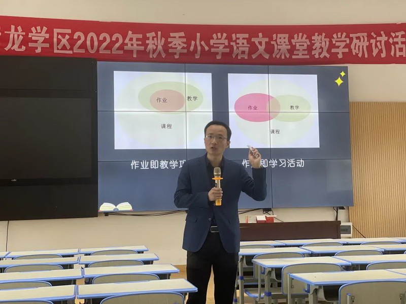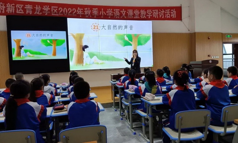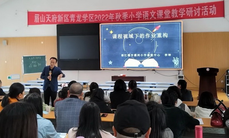 In order to explore the teaching law of the starting grade under the background of "double minus", show multiple teaching perspectives and collide with thinking sparks.Qinglong School District, Tianfu New Area, Meishan, organized a Chinese teaching and research activity on October 26, 2022, and invited young teacher Wang Lihuan of our school to give a lecture "The Voice of Nature". After the class, director Li Kun of our school's curriculum development center gave a micro lecture "The Reconstruction of Homework in the Curriculum Perspective".