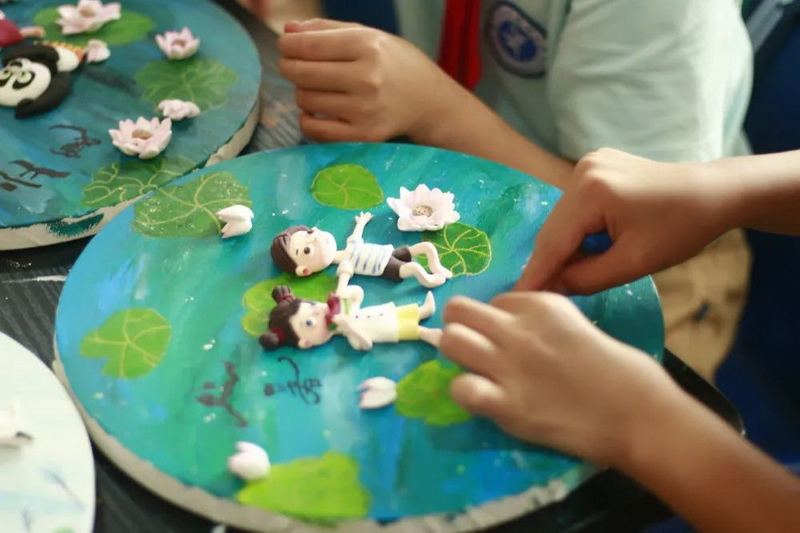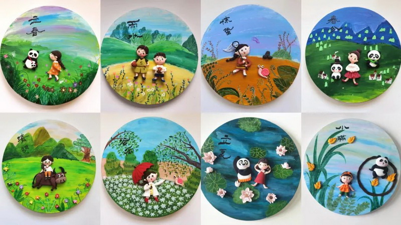 Through this exhibition, students not only learned about the origin and function of the 24 solar terms, but also learned about the creative way of combining dough sculpture and painting, which broadened their knowledge.