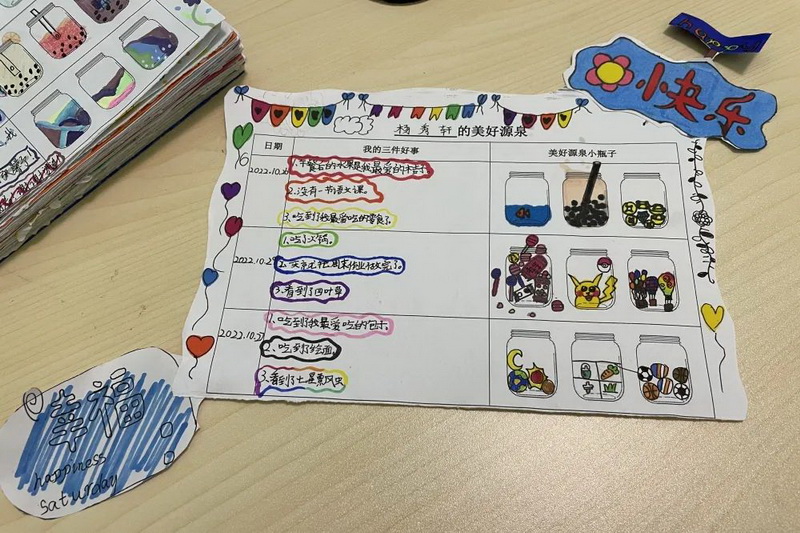 With the help of positive psychological techniques, Miss. Bai guided students to record three good things that happen every day with pen and paper.