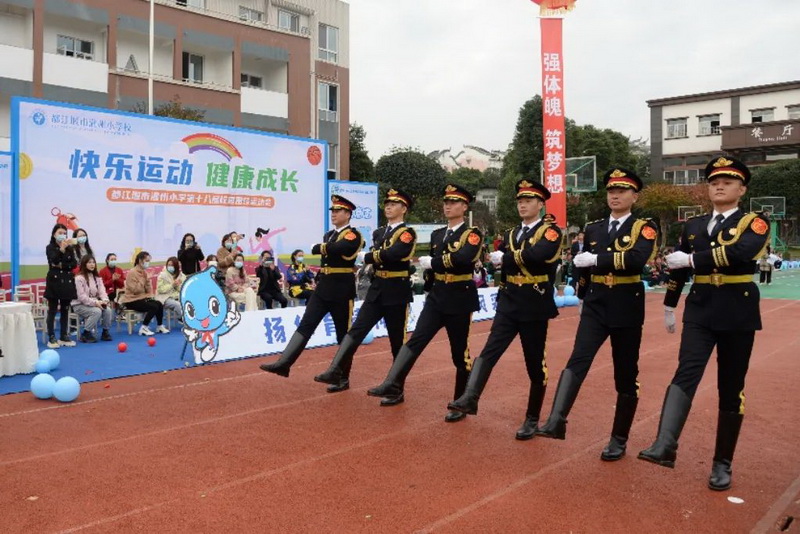 我们邀请了原中国人民解放军仪仗大队退伍战士组成的“旗志”团队,举行了隆重的升旗仪式。伴随着国旗的冉冉升起,我和我的运动会便就此拉开帷幕。