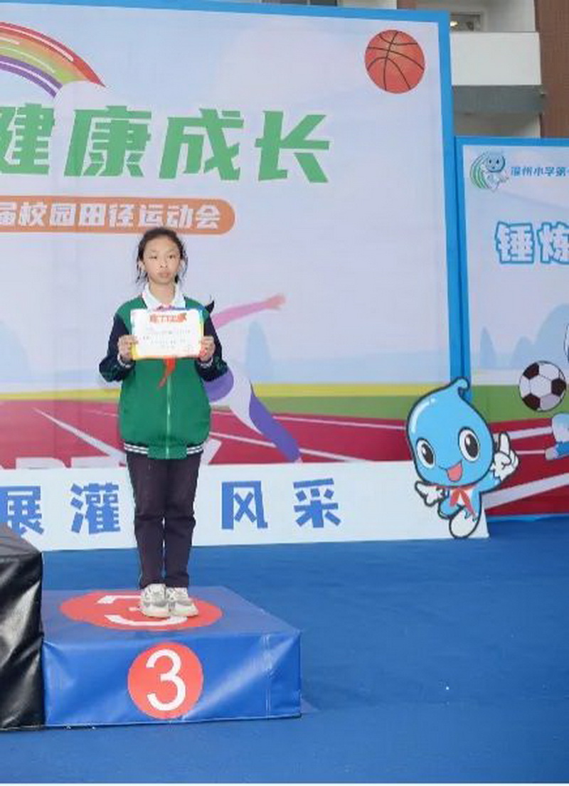 We use action to interpret the spirit of sports, with a firm attitude and the belief of going forward bravely, and strive to be a good teenager in the new era with all-round development of morality.