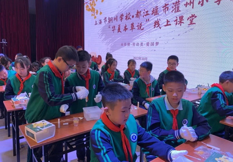 我校与上海市铜川学校开展“华夏本草说”线上课堂Our school and Shanghai Tongchuan School carry out online classes.