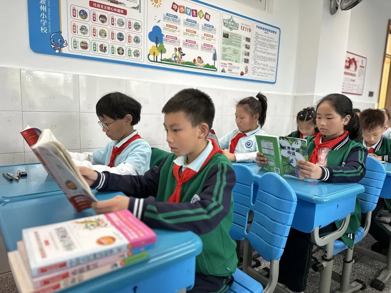 In order to implement the requirements of the new curriculum standard, we should attach importance to the role of the whole book reading in Chinese education, and give full play to the unique function of the whole book reading in enriching students' cultural heritage and improving students' artistic taste and Chinese literacy. From the summer vacation, under the leadership of teachers of Grade Four from Dujiangyan Guanzhou Primary School, the students began their happy journey of reading fairy tales.