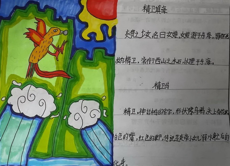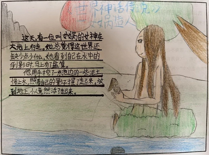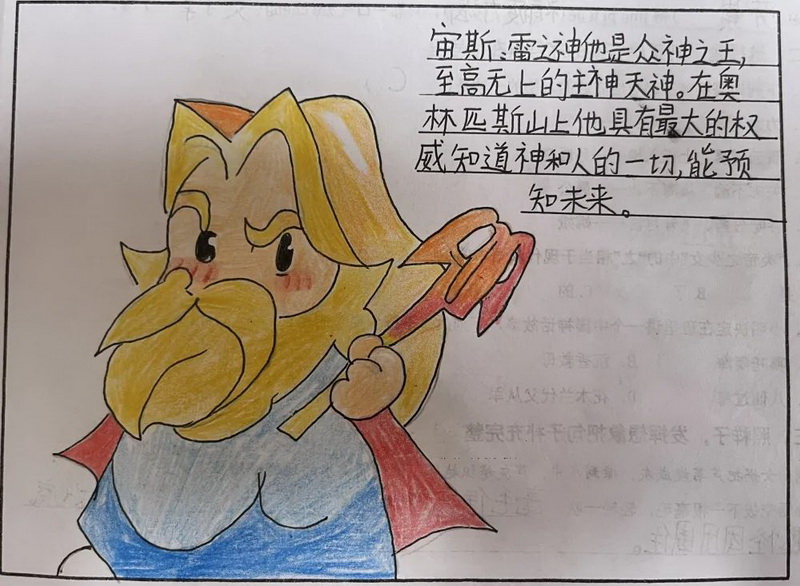 Myth stories are rich in content, unique in imagination and unique in charm. The vivid and magical characters are deeply impressed in the students' minds. In order to record the unforgettable plots in reading, the students drew the vivid and magical characters in the fairy tales.