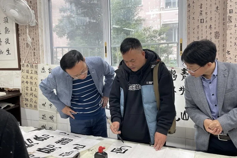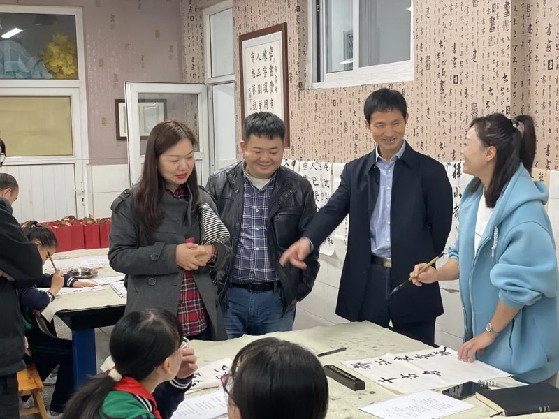After the visit, we held a calligraphy discussion, which showed the development and achievements of calligraphy in our school since its establishment. It also introduced the implementation and teaching achievements of calligraphy education in our school. The chairman put forward valuable suggestions on calligraphy education to us.