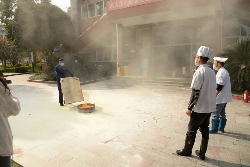 The fire rescue brigade explained the knowledge of fire extinguishing blankets, the use of fire blankets, demonstrated the fire extinguishing methods of fire blankets, and used fire extinguishing blankets by chefs and cooks to carry out fire extinguishing practice.