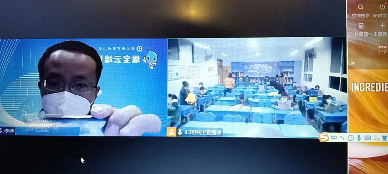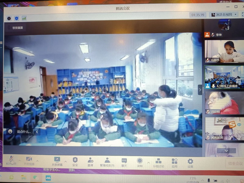 在当前抗疫新形势下,我们都在与时间赛跑,同病毒较量,灌小人正以实际行动最大限度确保师生家长的安全,确保教育教学生活秩序。鉴于部分孩子在家,大部分孩子在教室,我们按照课表进行,所有学科均实行线上线下混合式教学直播,即在教室里面老师给学生上课时,腾讯会议系统直播到居家隔离的孩子端,孩子也可以通过视频端和班上师生互动。