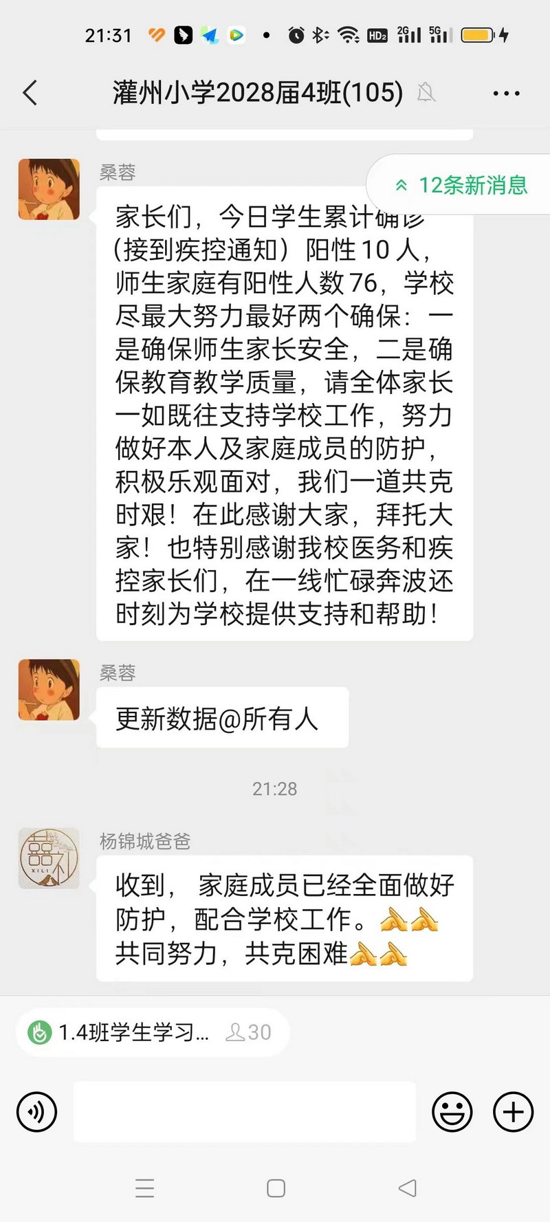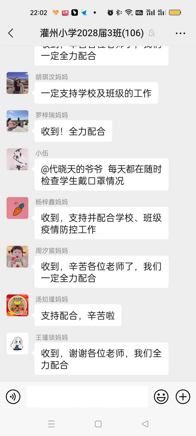 当前,孩子选择线上还是线下,我们都征求了家长们的意见,得到了家长们的支持。家委会在家长群中发布了根据本班学生健康状况进行的线上或居家的接龙选择。其实这样的教学模式从今年9月返校后,我们就给全校班级教室配备了直播系统,只要班上有请假的孩子,都可以选择在家和教室里的同学同步上课。