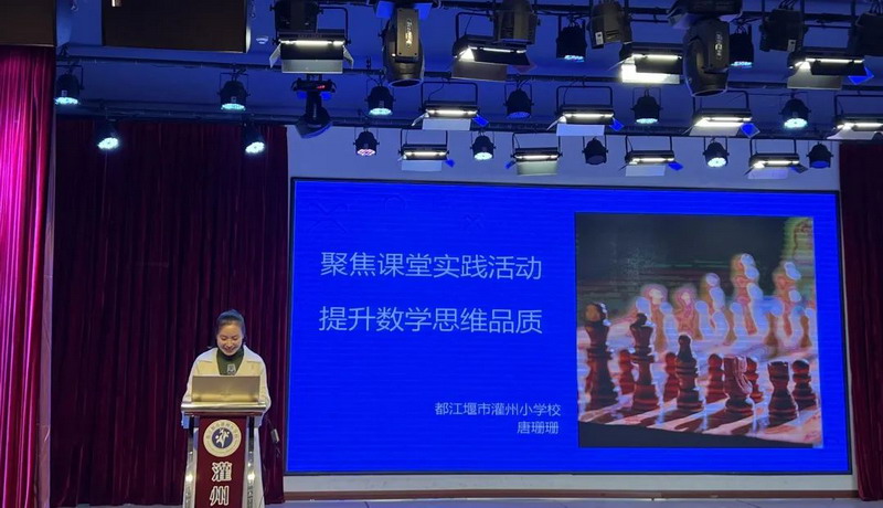 Teacher Hu Tao, a mathematics teacher and researcher from the Dujiangyan Primary and Secondary Education Research Office, delivered a keynote speech on "Thinking and Teaching Strategies of Fun Mathematics".