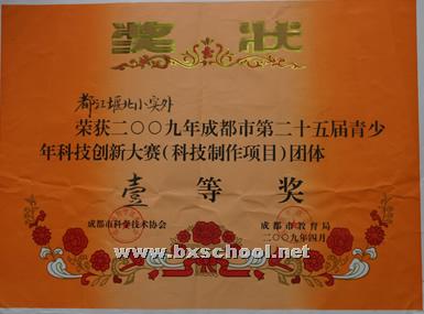 在本期我校科学组组织孩子们参加了成都市第二十五届青少年科技创新大赛,共有29名孩子进入决赛,通过他们的努力,在全成都市几百所参赛学校的几千名参赛选手中脱颖而出,共获得一等奖4个,二等奖7个,三等奖18个,学校也因此荣获团体一等奖。
