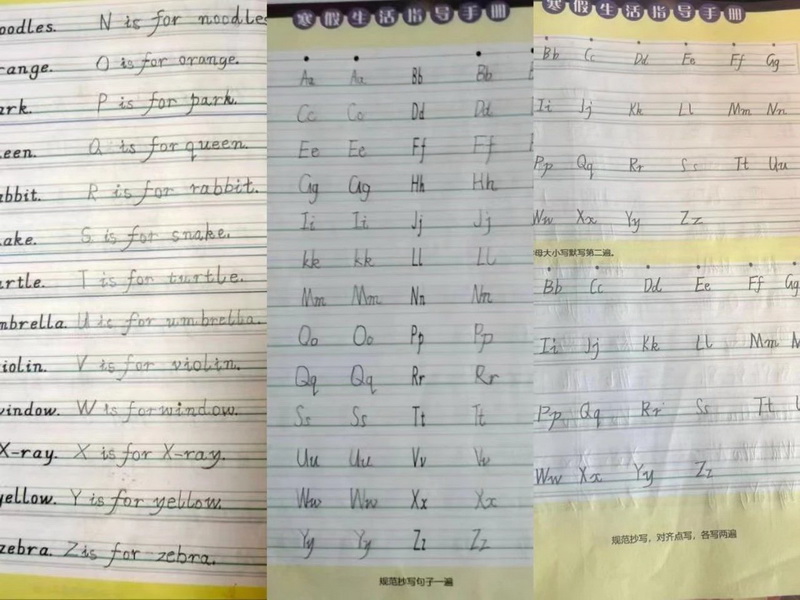 Look, behind each characteristic homework is the embodiment and improvement of the children's oral English, drawing, writing, creation and so on.
