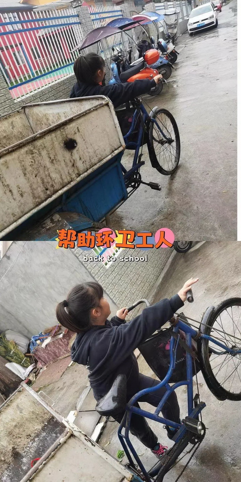A beautiful environment needs to be jointly created, and civilized habits need to be cultivated bit by bit. Send a proposal of garbage sorting, teach people around to sort garbage, clean the garbage in the public area, arrange and place the shared bikes..... The children's winter vacation life is wonderful, do their own meager efforts to contribute to the civilization of the city.