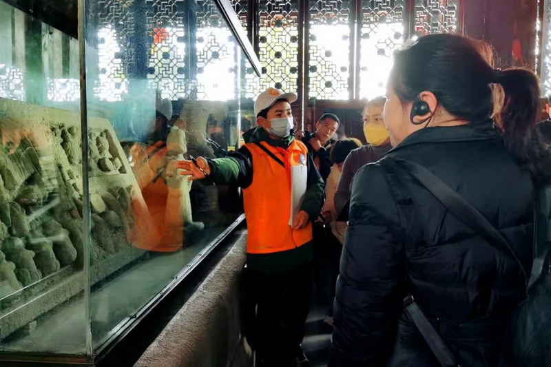 During the Spring Festival of the Year of the Rabbit in 2023, the "Little Orange" of Guanzhou Primary school tells the historical and cultural stories of this thousand-year-old city to the tourists, bringing different experiences to the guests from afar, and making them gain a full sense of happiness in Dujiangyan.