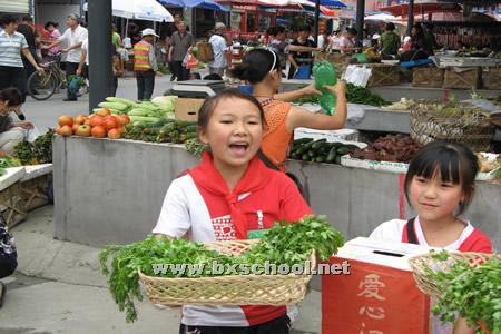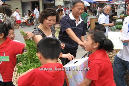 2009年6月13日,从联盟农贸综合市场传来了小孩子稚嫩的叫卖声,这正是我校为筹得慈善事业的捐款而举行的“桑田园”蔬菜义卖活动。孩子们在富有激情的吆喝和讨价还价中不仅收获了劳动的乐趣,还把自己的爱心通过新鲜的蔬菜传递到了热闹的人群中。此次活动锻炼了孩子们的社会活动能力,也得到了社会的一致好评。在此还要感谢幸福镇政府和联盟农贸综合市场的大力支持!