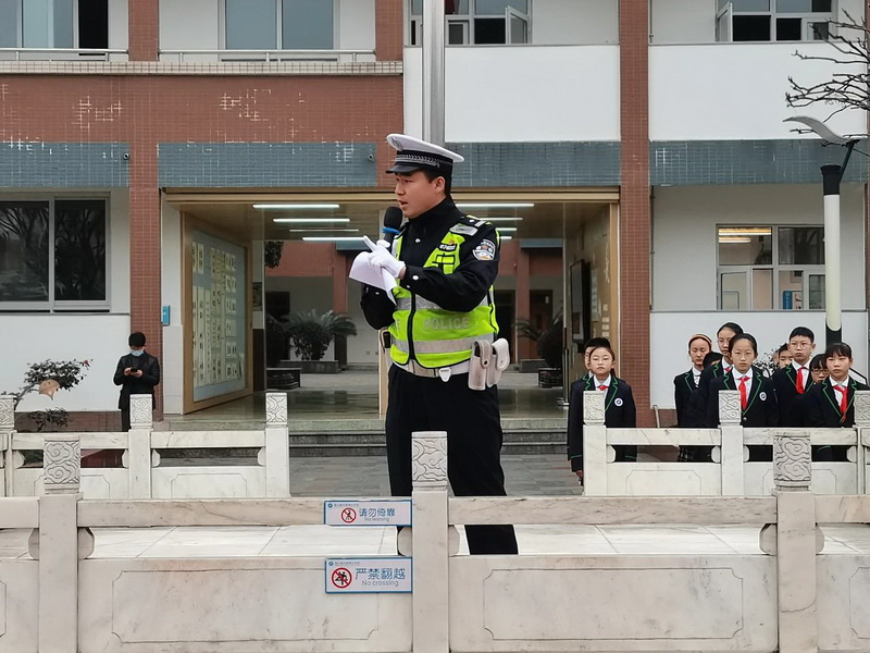 According to the characteristics of students' travel, Mr. Deng Yun, the traffic police officerfromDujiangyan’sPolice Bureau, focused on the traffic safety issues that students should pay attention to..