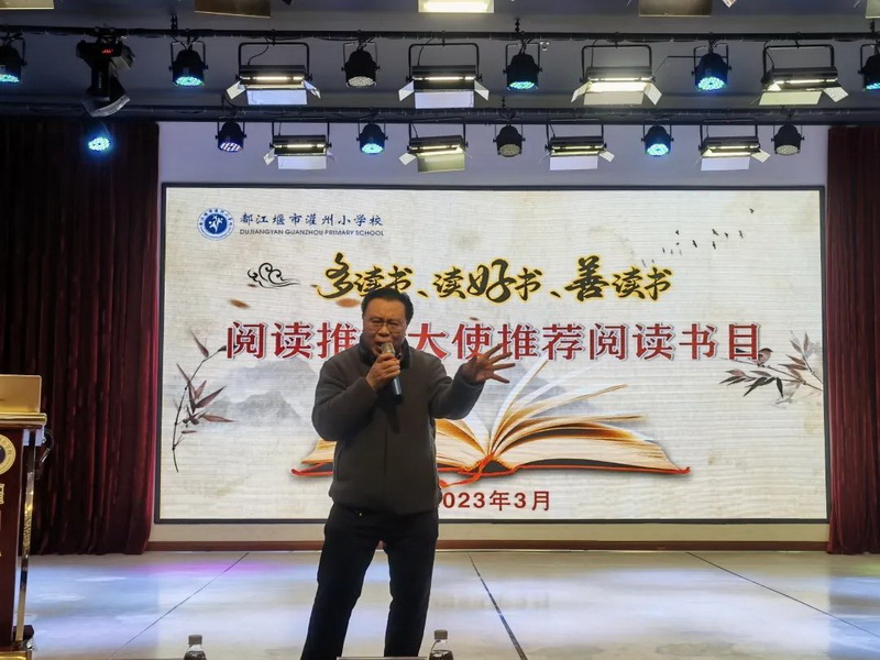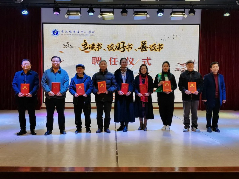 聘请都江堰市作家协会名家、家长代表为我校“阅读推广大使”,为“阅读推广大使”颁发聘书