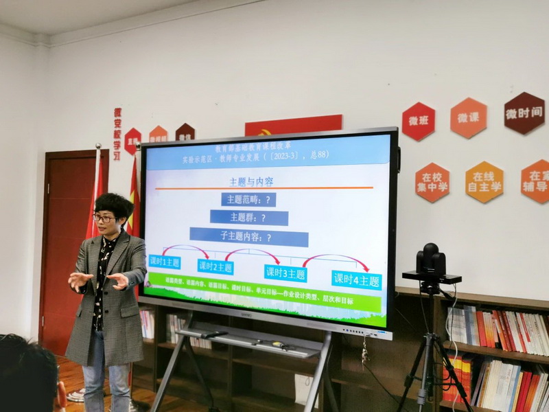 First of all, based on the new curriculum standards, Ms Yang gave a profound explanation of core literacy, focusing on the integration of teaching evaluation into classroom teaching and how to conduct the overall design of unit assignments.