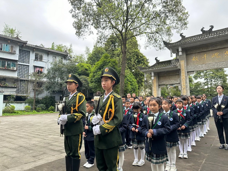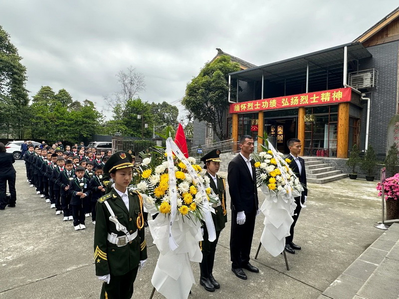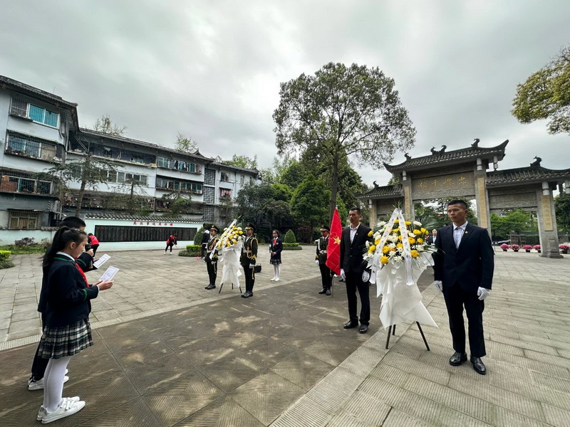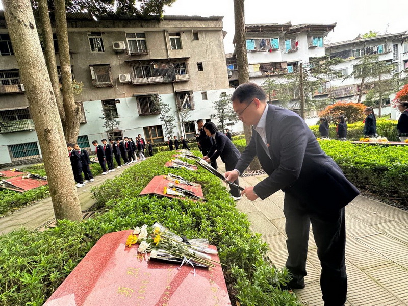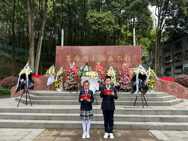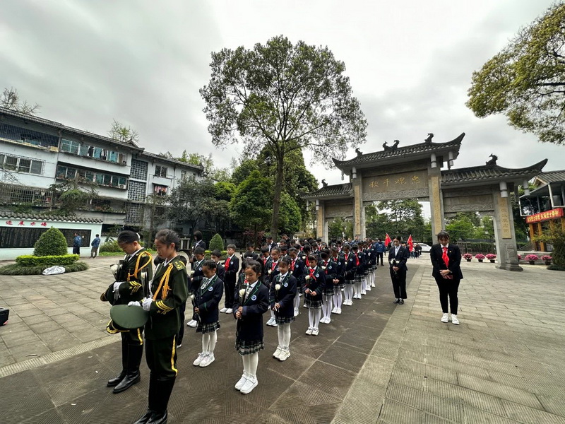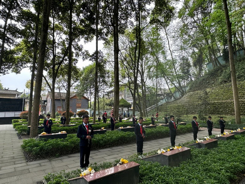 The wind falls, pear flowers and snow fill the court, and it is a year of Qingming. On the occasion of Qingming Festival, in order to mourn the revolutionary martyrs and remember their great achievements, students are taught to carry on the martyrs' Will and strive to be good team members in the new era. On the morning of April 4, representatives of the party members, teachers and Young Pioneers of our school went to the Revolutionary Martyrs' Cemetery of Dujiangyan City to hold a ceremony on the theme of “Offering sacrifices to the revolutionary martyrs and promoting the spirit of the times”, and held a solemn memorial ceremony in front of the monument.
