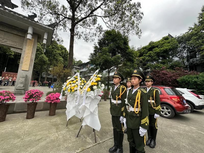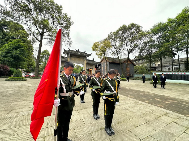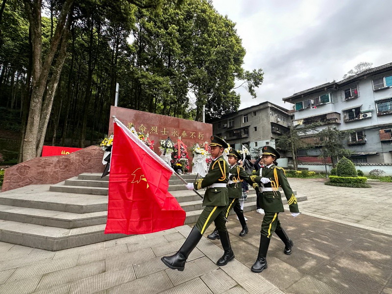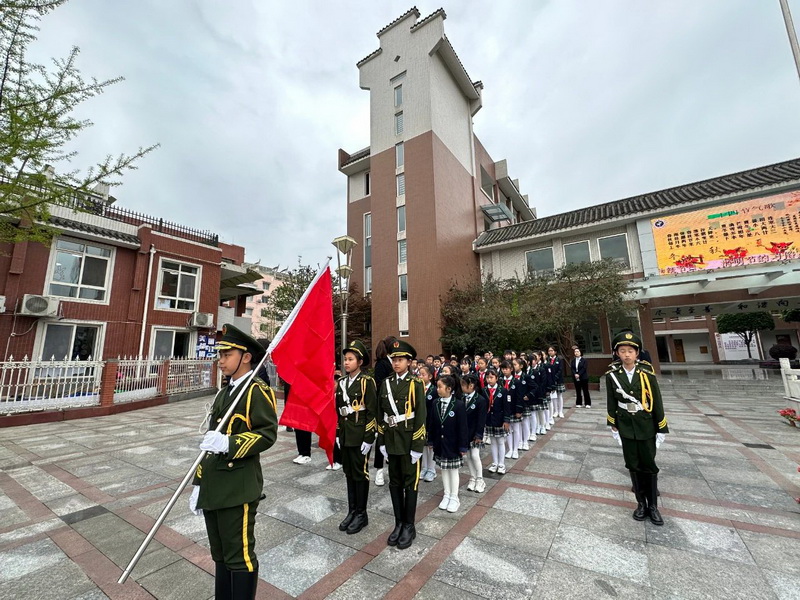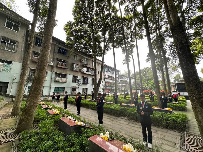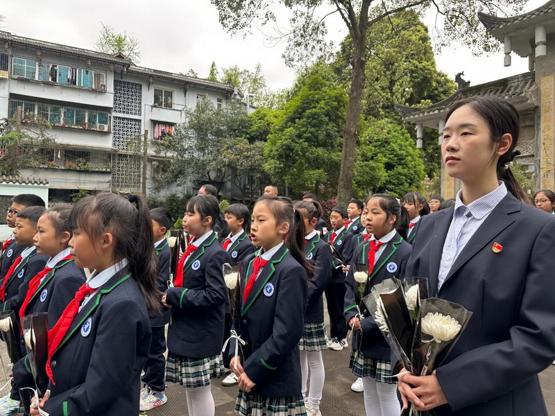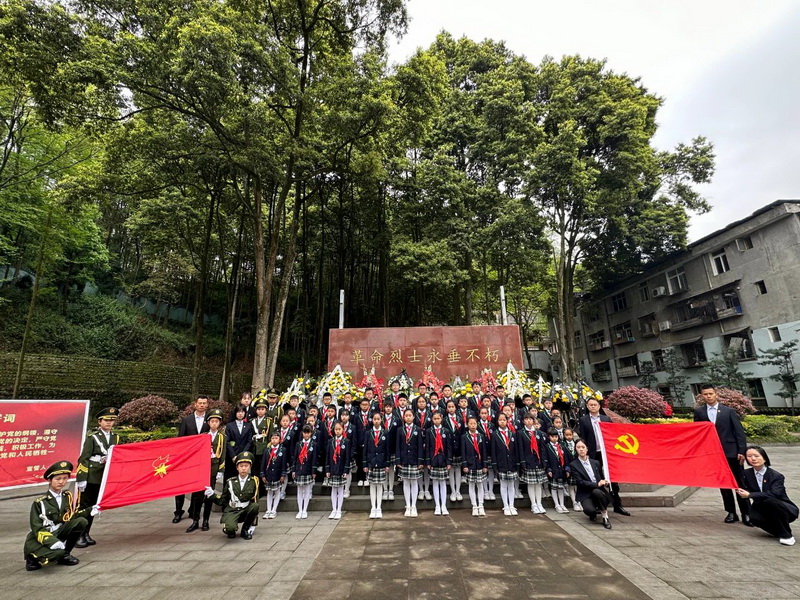 The wind falls, pear flowers and snow fill the court, and it is a year of Qingming. On the occasion of Qingming Festival, in order to mourn the revolutionary martyrs and remember their great achievements, students are taught to carry on the martyrs' Will and strive to be good team members in the new era. On the morning of April 4, representatives of the party members, teachers and Young Pioneers of our school went to the Revolutionary Martyrs' Cemetery of Dujiangyan City to hold a ceremony on the theme of “Offering sacrifices to the revolutionary martyrs and promoting the spirit of the times”, and held a solemn memorial ceremony in front of the monument.