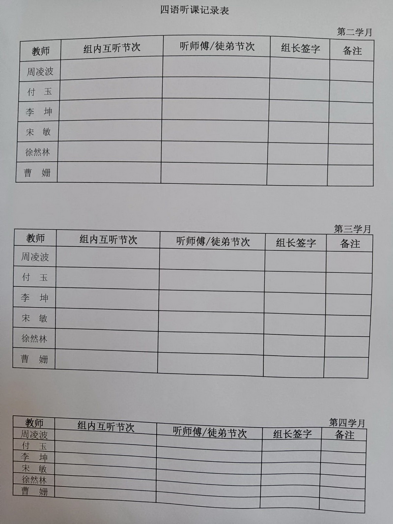 1、教案不改,课堂不变;课堂未变,课程难新。因此,我们聚焦关键环节,完成我校备课设计的3.0版本提升,着眼单元教学与课程视域。 We have improved our teaching design 2、对接新课标修订教研组长手册,杜绝教研碎片事务化,促使老师们研讨时更加关注课堂结构化。 We revised the manual of the head of teaching and research group. 3、对标都江堰好课堂教学量表修改教师听课本,引领新的教学与评价。 We revised thelecture notes.