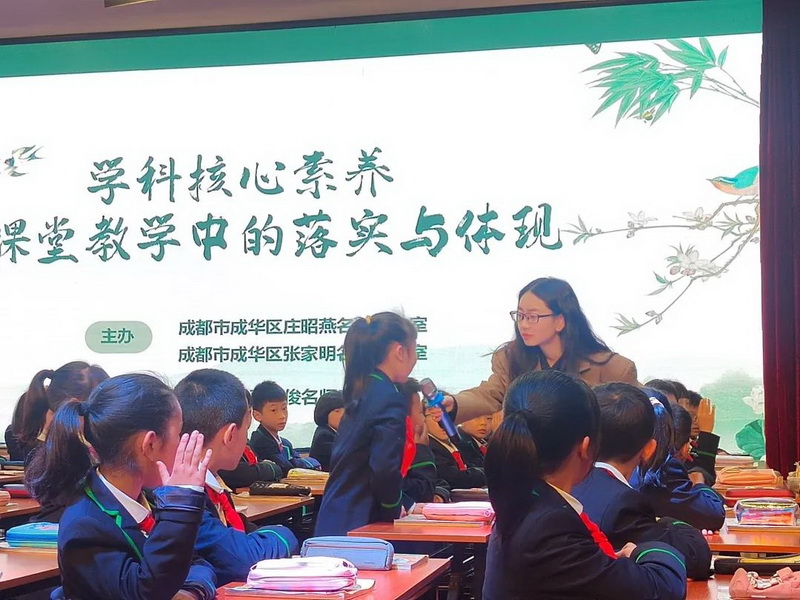In order to give full play to the exemplary, leading and radiating role of the master teacher studio in education, teaching and professional development of teachers, the teaching and research cooperation and exchanges between the master teacher studio are enhanced. On March 31, 2023, the joint teaching and research activity of "Implementation and Embodiment of Subject Core Literacy in Classroom Teaching" sponsored by Zhuang Zhaoyan Famous Teachers' Studio in Chenghua District of Chengdu and Zhang Jiaming Famous Teachers' Studio in Chenghua District of Chengdu and undertaken by Dujiangyan Ma Changjun Famous Chinese Teachers' Studio was held in Dujiangyan Guanzhou Primary School. Zhuang Zhaoyan, Zhang Jiaming and Ma Changjun, leaders of Zhuang Zhaoyan Famous Teacher Studio, Zhang Jiaming Famous Teacher Studio and Ma Changjun Famous Teacher Studio, led studio members and Chinese teachers of Guanzhou Primary School to participate in this activity.