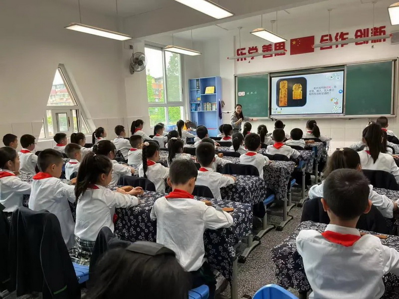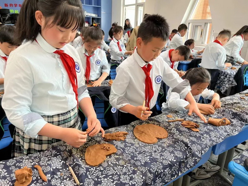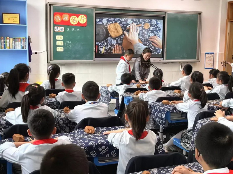 聚源小学何玲老师到我校展示泥版画《泥塑名片》,教会孩子们泥塑技法,并制作了泥名片。Juyuan primary school teacher he ling to our school to show clay engraving“Clay business card”, teach the children clay skills, and made a clay business card.