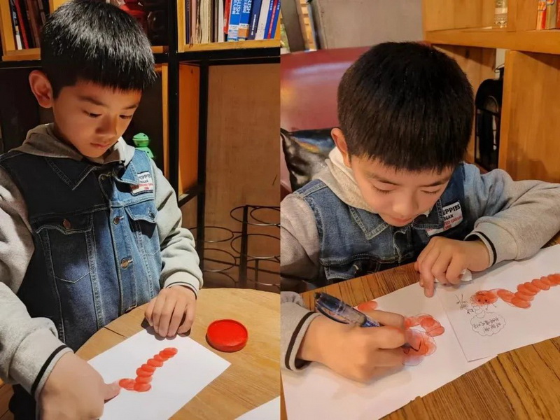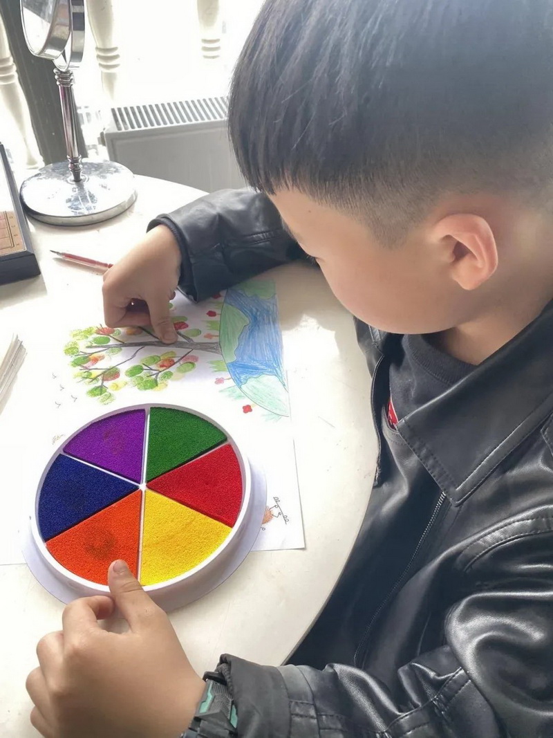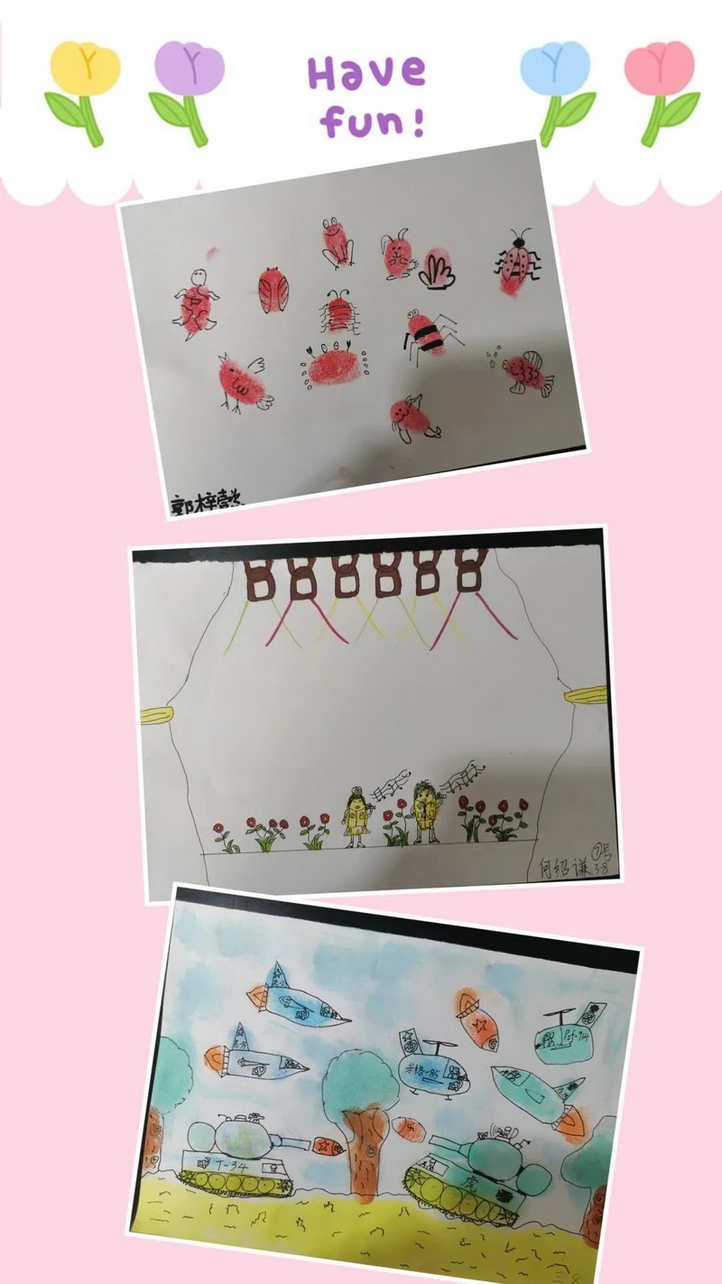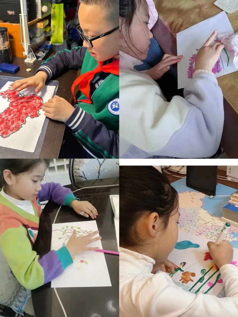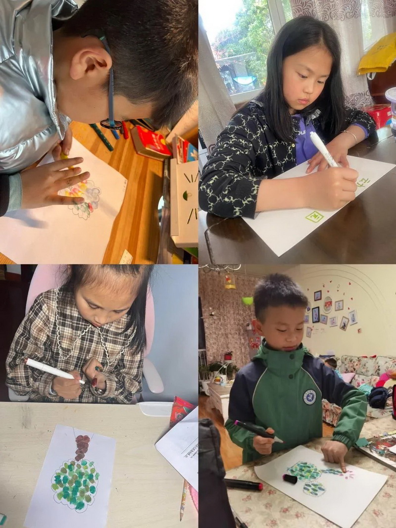 回到家里,孩子们也乐此不疲,继续创作,把作品带回学校,与同学们分享,多么有趣呀!