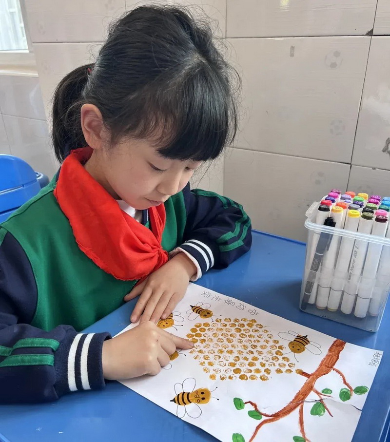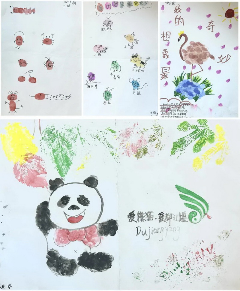 Third Grade Chinese teachers have developed an integrated learning activity based on the theme of the unit "Wonderful Imagination" - fingerprint painting. This activity requires students to draw imaginary things according to the characteristics of their fingerprints after they have made them. This activity allows students to experience the pleasures of imagination through imaginative practice.