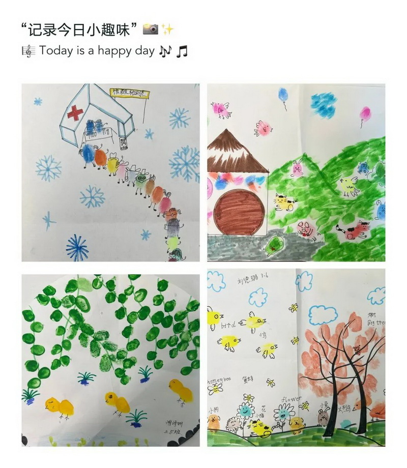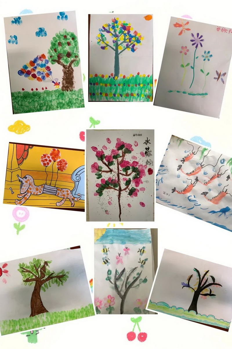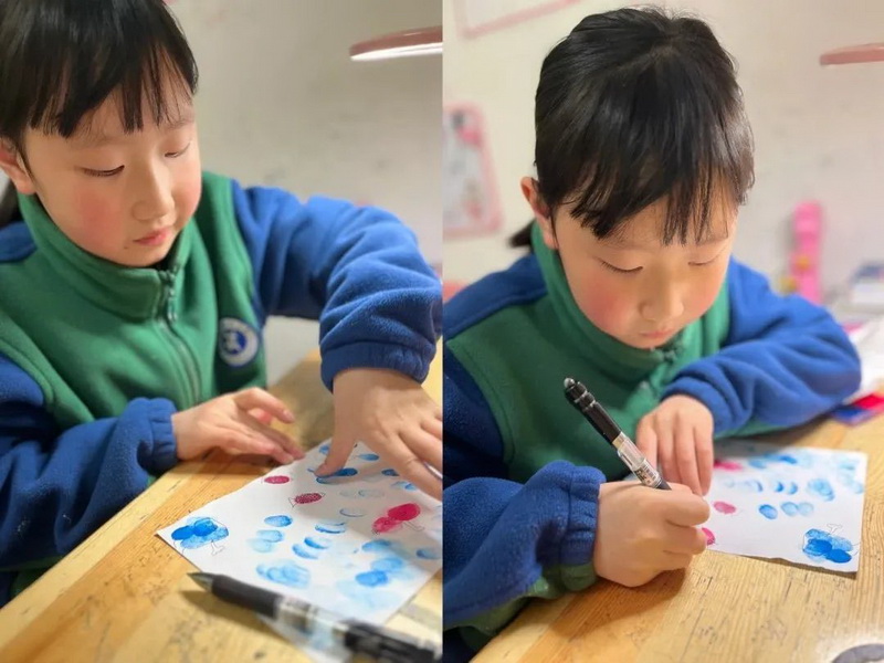 During the activity, the children connected their fingerprints with various things around them. With a gentle press of their hands on the white paper, five fingerprints of different shapes and colours appeared on the paper. Add a few strokes and you have a cute little cat, a tiny leaf, a beautiful flower, a vivid story and a strange world ...... The teachers apply their knowledge to practical activities and the students deepen their understanding from the practical activities. Finger painting takes children into the world of imagination, each finger painting has an interesting soul and lets you experience the innocence and loveliness of children.